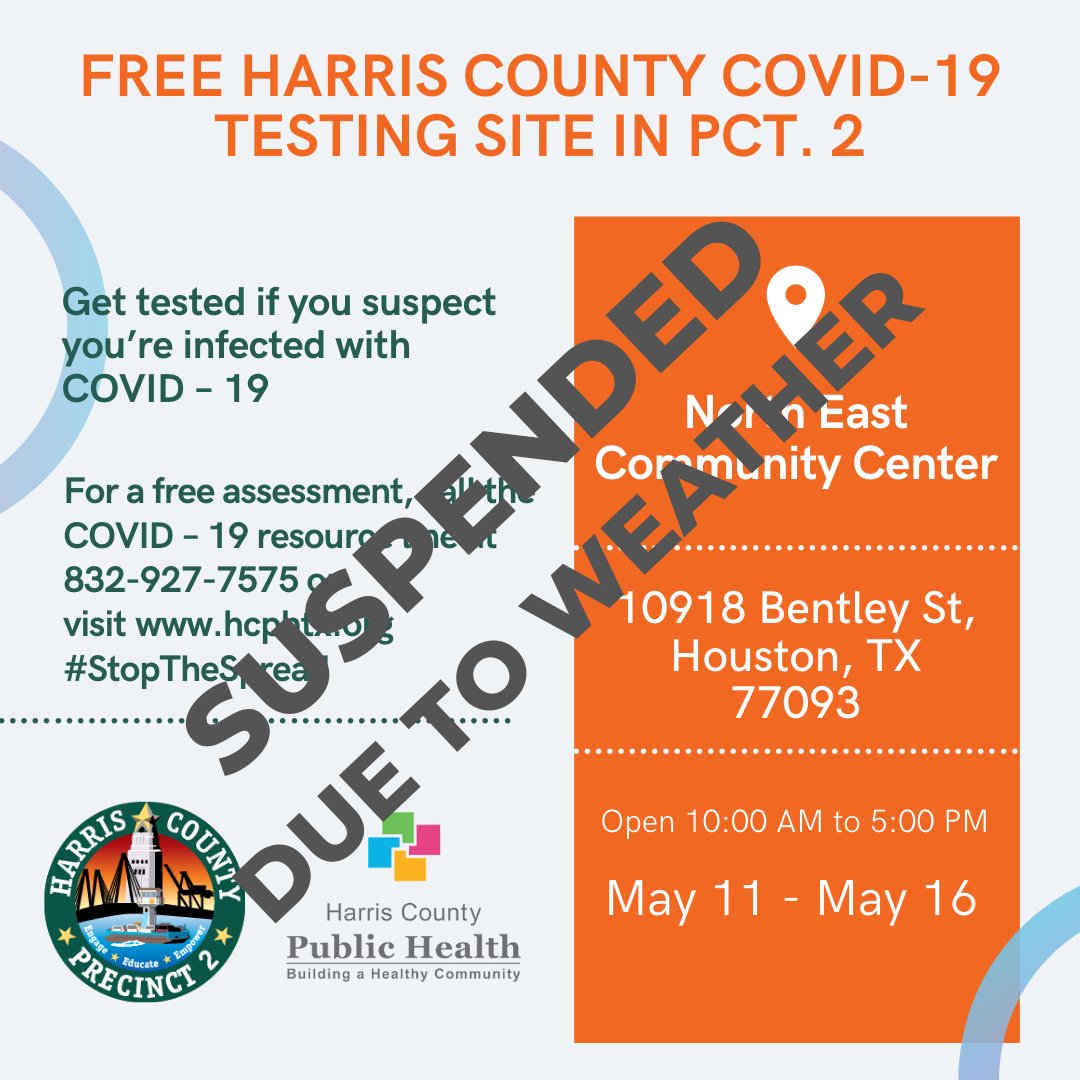 Harris County Commissioner Pct 2 On Twitter Urgent All Hcphtx Covid19 Testing Sites Are Closed Today Tomorrow Due To The Weather This Includes Our Testing Site At N E Center Hcph Plans